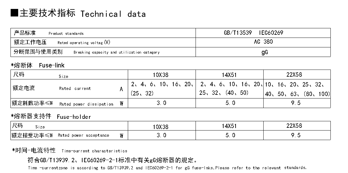 本系列熔斷器由高分斷能力圓筒形帽熔斷體和熔斷器支持件組成。