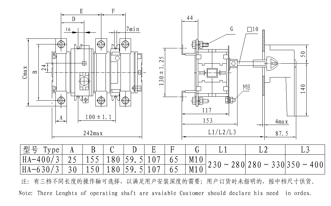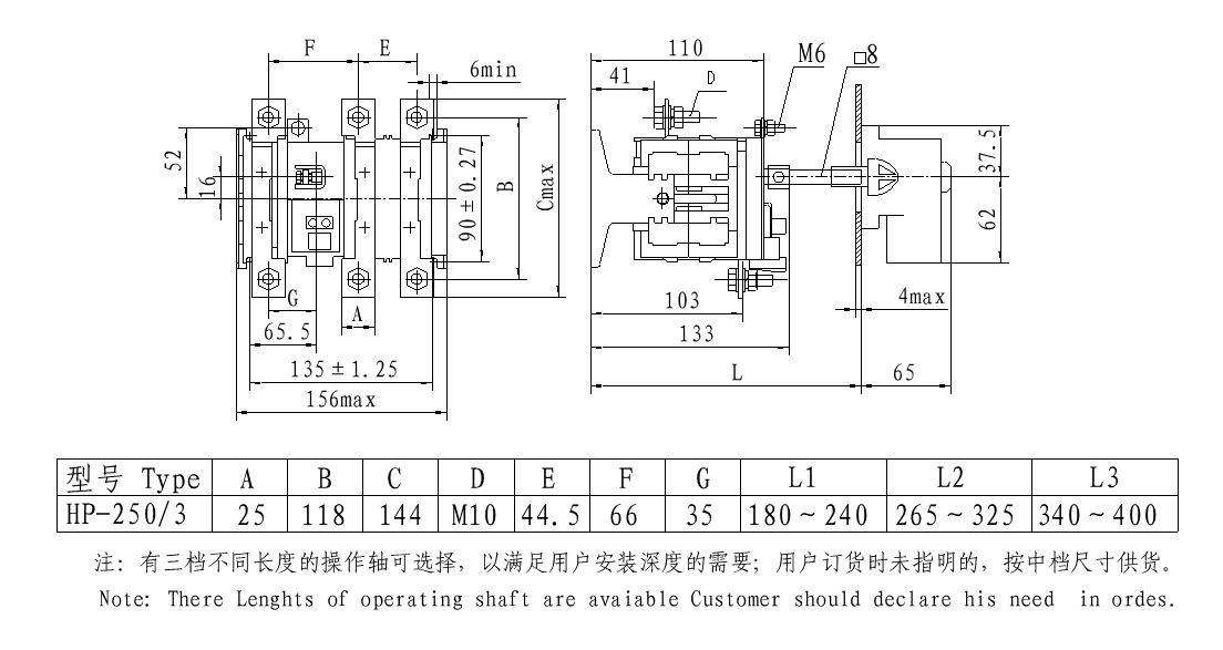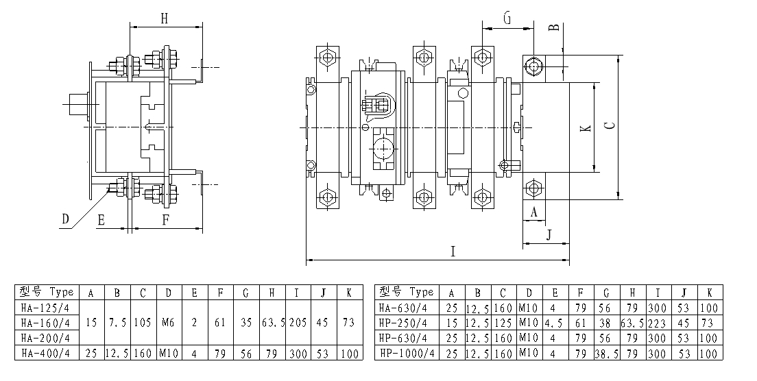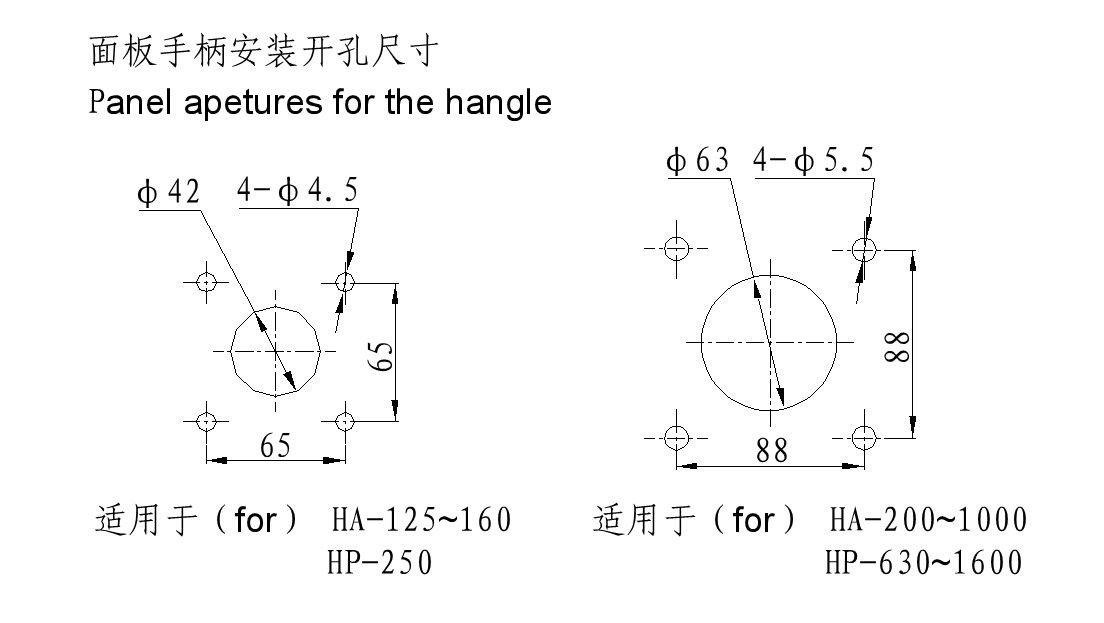 Series HA(QA)、 HP(QP) switch-disconnector are mainly applied in the distribution circuits and motor circuits with high short-circuit currents as the power switches. As the switch handle is in rotary operation, they are especially suitable for installation and application in drawer type switch cabinets. Technical performances confirm to standards IEC60947.3 and GB14048.3.This series switches are of closed structure design. The contact system is composed of static knife contacts, moving rolling contacts and arc quenching sets that are all fitted in the sealed case made of arc resistant engineering plastic and zero arc flash out is achieved. The switching mach-anism is of reliable spring energy stored independent manual operation style.On the upper part of the. switch utmost two auxiliary switches may be quipped in, each having a set of electrical separated normal open and normal closed contacts.